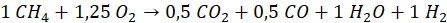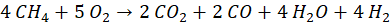 Widać, że na 1 mol metanu użyto stechiometrycznej ilości tlenu, więc ilość powstałych produktów również była stechiometryczna.