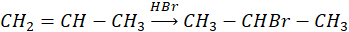 Zapisz równania reakcji przyłączania wodoru, bromowodoru, chloru i wody do propenu.