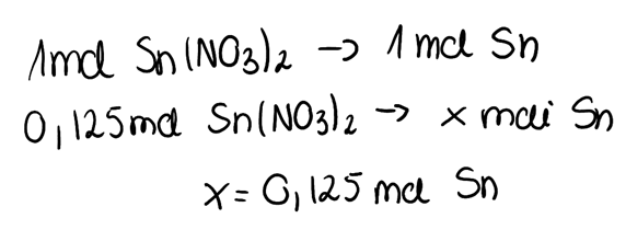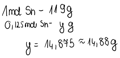 3. Korzystając z proporcji, obliczamy masę 0,125 mola cyny: