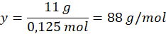0,125 mol – 11 g