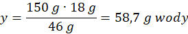 Z równania wynika, że z 1 mola etanolu – 46 g – powstaje 1 mol kwasu – 60 g. Ilość powstała z 150 g: