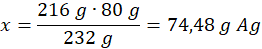 Z równania wynika, że z 1 mola tlenku – 232 g – powstają 2 mole srebra – 216 g.