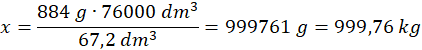 Z równania wynika, że na 1 mol trioleinanianu glicerolu – 884 g – potrzebne są 3 mole wodoru – 67,2 dm3 w warunkach normalnych.