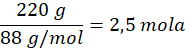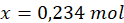 | Liczba moli | Kwas octowy | Etanol | Octan etylu | Woda |