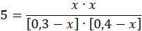 | Równowaga | 3 - x | 5 - x | 2,5 | 2,5 |