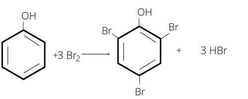 Fenol reaguje z bromem.