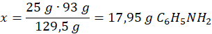 Z równania wiadomo, że z 1 mola chlorku fenyloamoniowego – 129,5 g – powstaje 1 mol aniliny – 93 g.