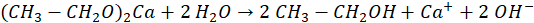 Podczas hydrolizy etanolanu wapnia powstają jony OH- nadające roztworowi odczyn zasadowy.