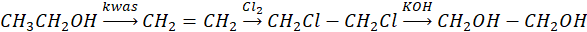 Zapisz schemat reakcji otrzymywania glikolu etylenowego z etanolu.