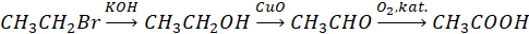 Zapisz schemat reakcji otrzymywania kwasu octowego z bromku etylu.