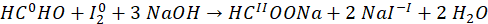 Zapisz równanie reakcji aldehydu mrówkowego w roztworze NaOH z jodem.