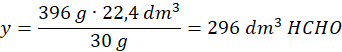 W warunkach normalnych 30 g aldehydu mrówkowego (1 mol) zajmuje 22,4 dm3: