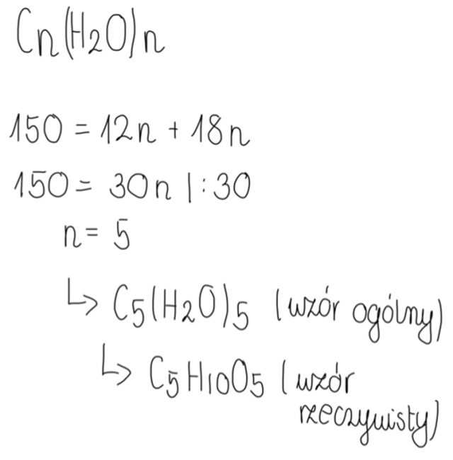 Ustal wzór rzeczywisty monosacharydu, jeżeli wiadomo, że jego masa molowa wynosi 150 g/mol, korzystając z wzoru ogólnego monosacharydów.