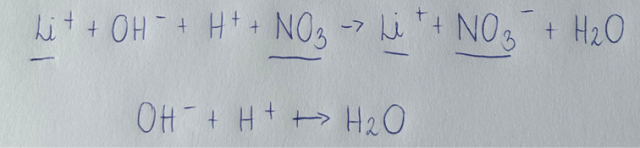 Wybierz, które z podanych w treści zadania jonów z punktów a-d biorą udział w reakcji wodorotlenku litu z kwasem azotowym (V):