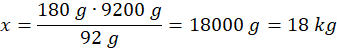 Ilość glukozy potrzebna, aby powstało 9200 g etanolu: