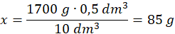 x g – 0,5 dm3