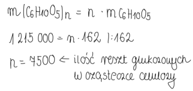 Oblicz ilość reszt glukozy zawartych w cząsteczce celulozy o masie cząsteczkowej 1215000 u, znając wzór ogólny polisacharydów.