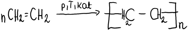 Napisz równanie reakcji polimeryzacji etenu.