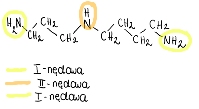 Określ rzędowość grup aminowych w podanym związku o działaniu biologicznym.