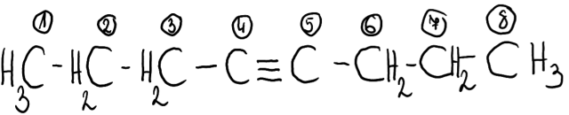 · Wybrać najdłuższy możliwy łańcuch węglowy- będzie on stanowił łańcuch główny i musi zawierać w swojej strukturze wiązanie potrójne.