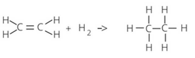 Reakcja przyłączania wodoru polega na przyłączeniu tego pierwiastka w miejscu pękania wiązań wielokrotnych między atomami węgla.