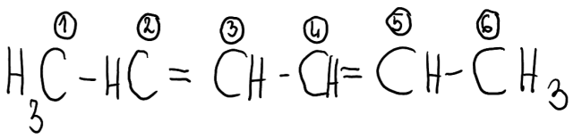 1. Wyodrębnić najdłuższy możliwy łańcuch główny, w strukturze którego znajduje się wiązanie podwójne.