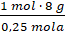 8g E – 0,25 mola O2