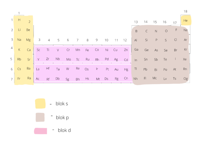 W tym zadaniu podziel podane pierwiastki na należące do bloku s, bloku p i bloku d: argon, azot, brom, chlor, glin, nikiel, potas, siarka, stront, wanad.