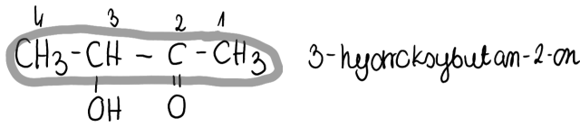 · Węgiel grupy karbonylowej ma uzyskać niższy lokant niż ewentualne podstawniki, wiązania wielokrotne itd.