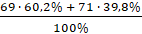 Aby obliczyć masę atomową, musimy pomnożyć liczbę masową jednego pierwiastka (69) z jego zawartością procentową (60,2%). Następnie mnożymy liczbę masową drugiego pierwiastka (71) z jego zawartością procentową (39,8%). Dodajemy do siebie wyniki (4153,8 + 2825,8 = 6979,6), a następnie wynik dzielimy przez 100%.
