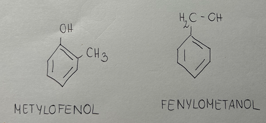 Aby rozróżnić oba związki, należy przeprowadzić reakcję z FeCl3. Jest to reakcja charakterystyczna, w wyniku której można wykryć fenole (metylofenol).