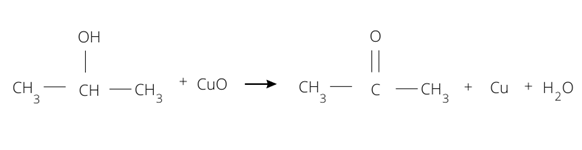 Alkohol II-rzędowy, np. propan-2-ol pod wpływem tlenku miedzi (II) utlenia się do ketonu – propanonu: