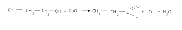 Alkohol I-rzędowy, np. propanol pod wpływem tlenku miedzi (II) utlenia się do aldehydu – propanalu: