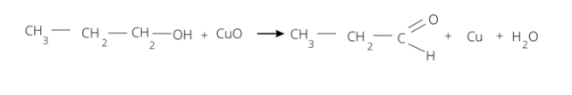 Alkohol I-rzędowy, np. propanol pod wpływem tlenku miedzi (II) utlenia się do aldehydu – propanalu: