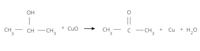 Alkohol II-rzędowy, np. propan-2-ol pod wpływem tlenku miedzi (II) utlenia się do ketonu – propanonu:
