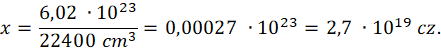 Oblicz ilość cząsteczek w 1 cm3 gazu w warunkach normalnych.