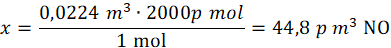 Objętość NO zawierająca 2000 p mola azotu: