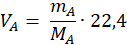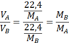 Układamy stosunek VA do VB. Ponieważ mA = mB = 1 g: