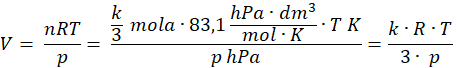 Podane dane podstawiamy do równania Clapeyrona przekształconego tak, aby obliczyć objętość: