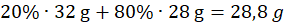 28,8 g – 1 mol