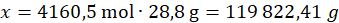 x g - 4160,5 moli