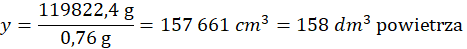 Objętość 119 822,4 g powietrza obliczona na podstawie podanej gęstości: