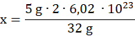 2 ∙ 6,02 ∙ 1023 at. – 32 g