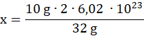 2 ∙ 6,02 ∙ 1023 at. – 32 g