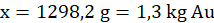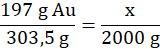 W 1 molu (303,5 g) chlorku złota (III) znajduje się 197 g złota. Obliczamy ilość złota w 2000 g chlorku: