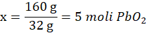 Oblicz ilość moli PbO2, które zawierają 160 g tlenu.
