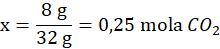 w x molach – 8 g