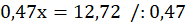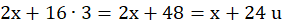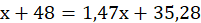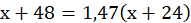 Z treści zadania wiadomo, że x+48 jest 1,47 raza większe od x+24. Na podstawie tych danych tworzymy równanie: