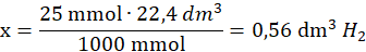 Oblicz objętość 25 mmoli wodoru w warunkach normalnych.