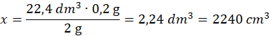 Oblicz, czy 0,2 g wodoru w warunkach normalnych mają objętość 100 cm3.